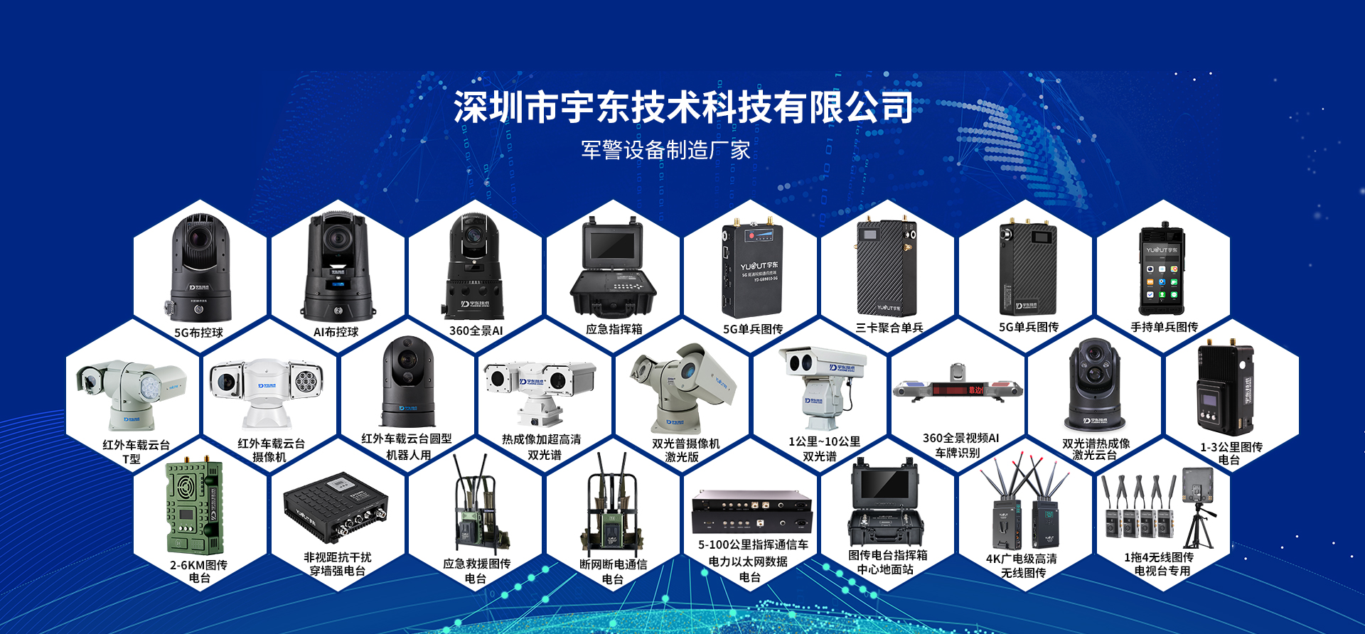深圳市宇東技術科技有限公司,成立于2016年,是一家專業(yè)從事軍警設備系統(tǒng)方案的研發(fā)、生產(chǎn)和銷售的高科技企業(yè)。自主研發(fā)的設備有:應急單兵圖傳電臺、4/5G單兵無線圖傳、4G/5G布控球、4G/5G視頻終端、廣播影視無線圖傳、1-100KM超遠距離無線圖傳、應急指揮系統(tǒng)、機器人/無人車無線通信、車載云臺攝像機、移動哨兵取證系統(tǒng)、COFDM無線圖像傳輸應急指揮系統(tǒng)、雙光譜熱成像攝像機、三光普激光云臺,倒伏式升降照明燈、智能高速云臺攝像機、車載鍵盤顯示器等。主要應用于公安、消防、 交警、人防應急、城管執(zhí)法、環(huán)保監(jiān)控、三防應急、水利防汛、電力搶險、鐵路搶險、海事執(zhí)法、海監(jiān)巡查、海關邊防、碼頭監(jiān)控、森林防火、油田防盜、軍事偵察、電視轉播等;適合城區(qū)、海上、山地等視頻采集部門。